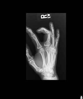 The x-rays taken at the time also revealed an enchondroma (benign bone tumor) in the knuckle.