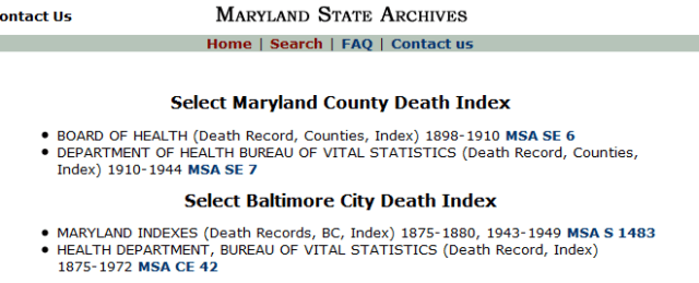 That is when I remember that the indexes are also located on the Maryland State Archives Guide To Government Records.